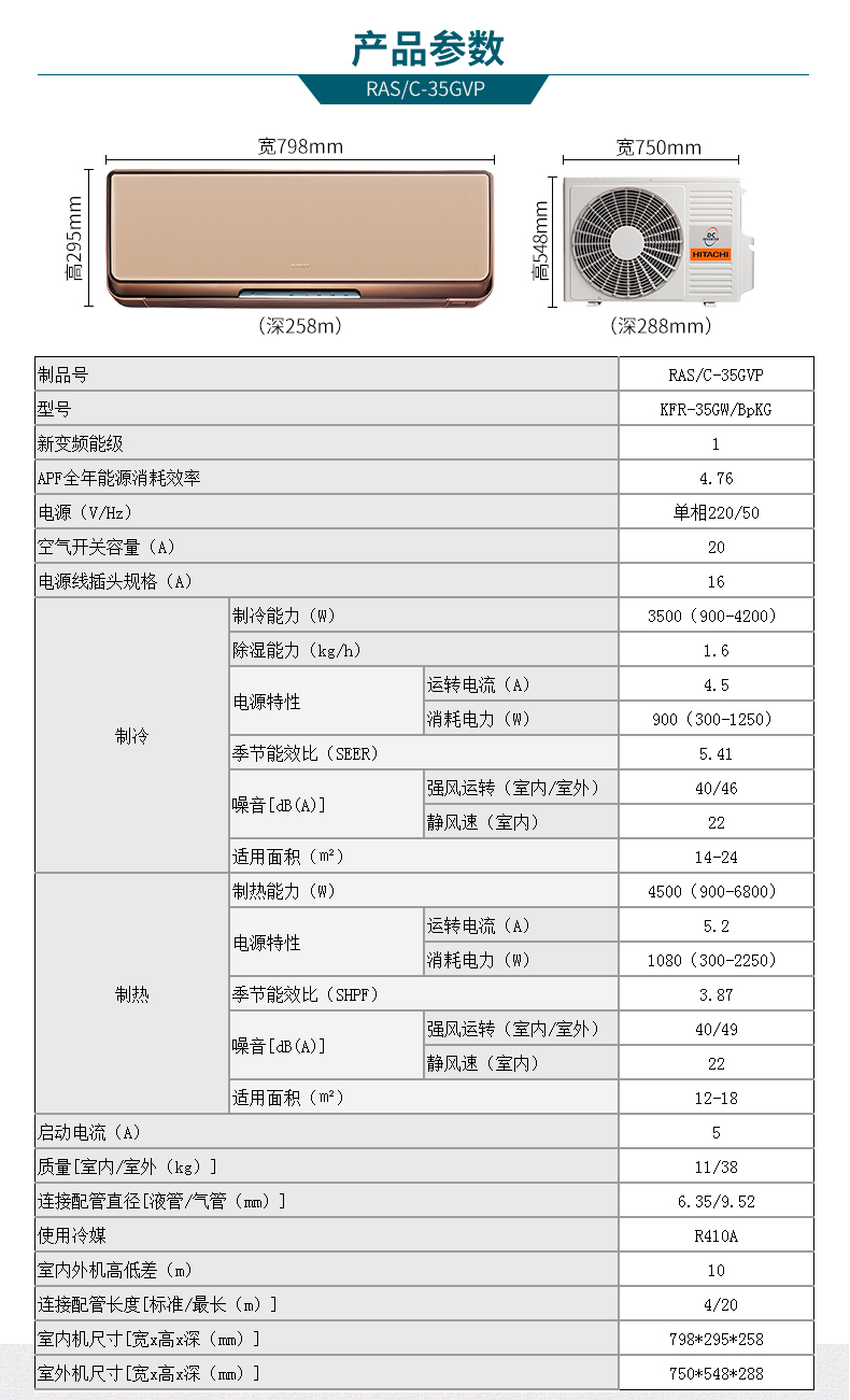 日立空調RAS/C-35DVP(變頻能效1級)具體參數 制品號...